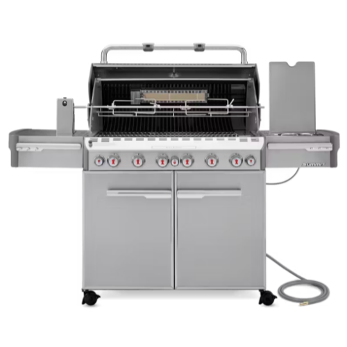 El Asador de gas Weber Summit® S-670 (gas natural) Stainless Steel es el modelo insignia de la marca, diseñado para quienes buscan lo mejor en potencia, lujo y durabilidad. Fabricado en acero inoxidable de alta calidad, combina elegancia con resistencia para un uso intensivo al aire libre.