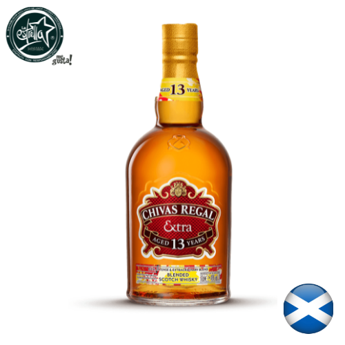 El Chivas Regal Extra 13 Años 700 ml es un blended scotch whisky premium inspirado en la primera tienda de los hermanos Chivas en Aberdeen. Esta edición celebra la innovación y el legado de la marca con una maduración especial de 13 años que resalta su suavidad y complejidad.