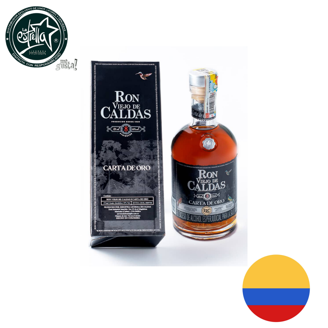 El Ron Viejo de Caldas Carta de Oro 375 ml es un ron colombiano de tradición y prestigio, elaborado con finas mieles vírgenes de caña de azúcar y envejecido en barricas de roble. Su proceso de maduración le otorga un color ámbar brillante, con notas suaves de vainilla, caramelo y madera, que se equilibran con un sabor delicado y redondo. Ideal para disfrutar solo, con hielo o en cócteles que resalten su carácter.